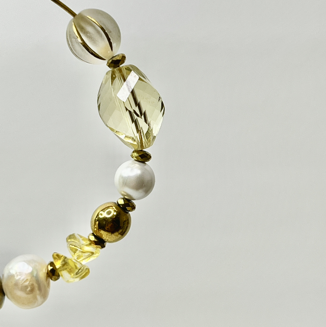 Matériaux : acier inoxydable, quartz, perles d’eau douce, hématite, perles de verre