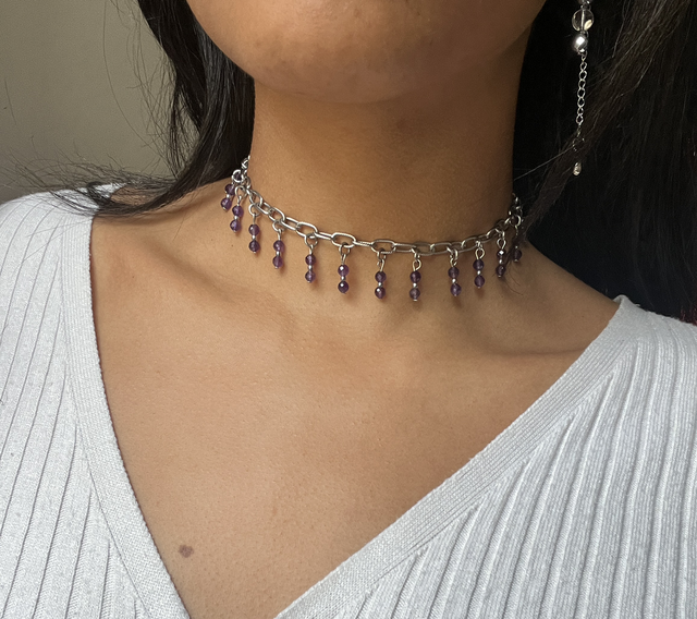 Matériaux : perles d’améthyste, d'hématite et chaîne en acier inoxydable