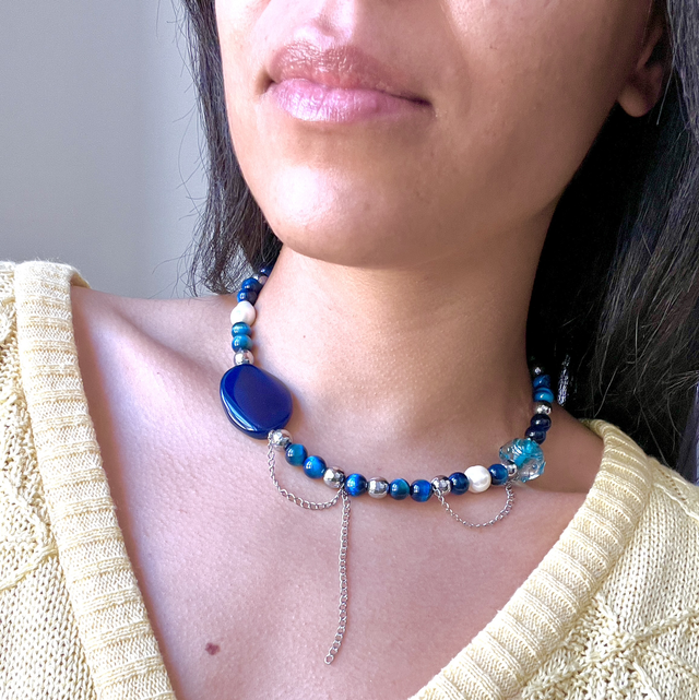 Aqua est un collier talisman, pensé comme une ligne fluide autour du cou, plus qu’un simple bijou.